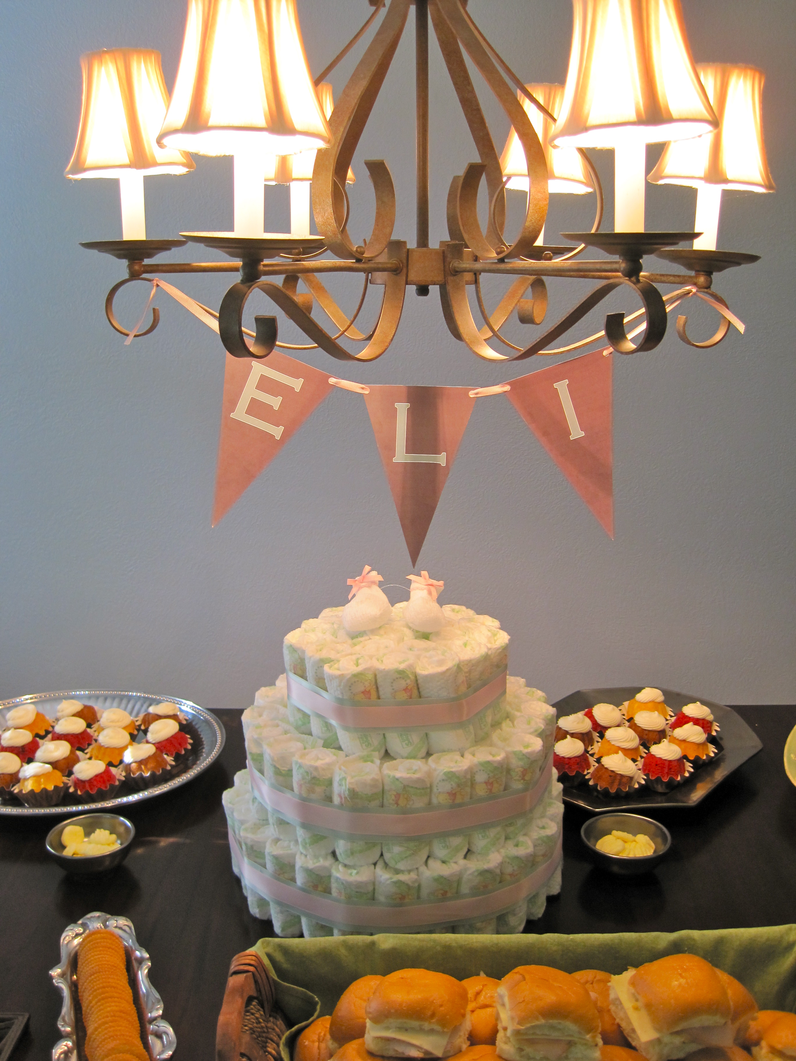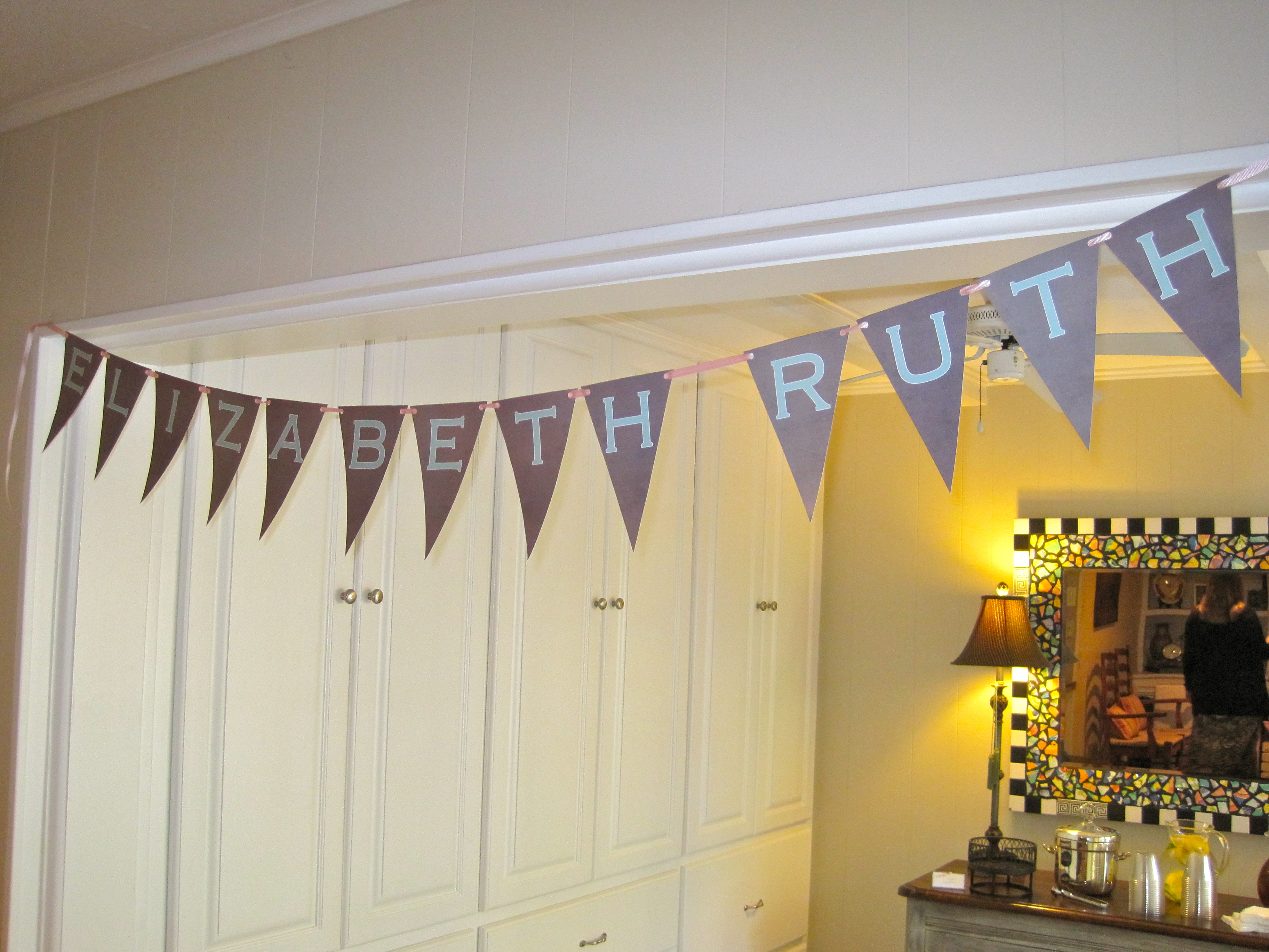 At the shower, we stayed fairly simple with the decorations, and created some name banners that matched the invitation design. (Please forgive the quality of the photos. Our camera died on us quite some time ago, but we haven’t had the time to take it to get fixed.)